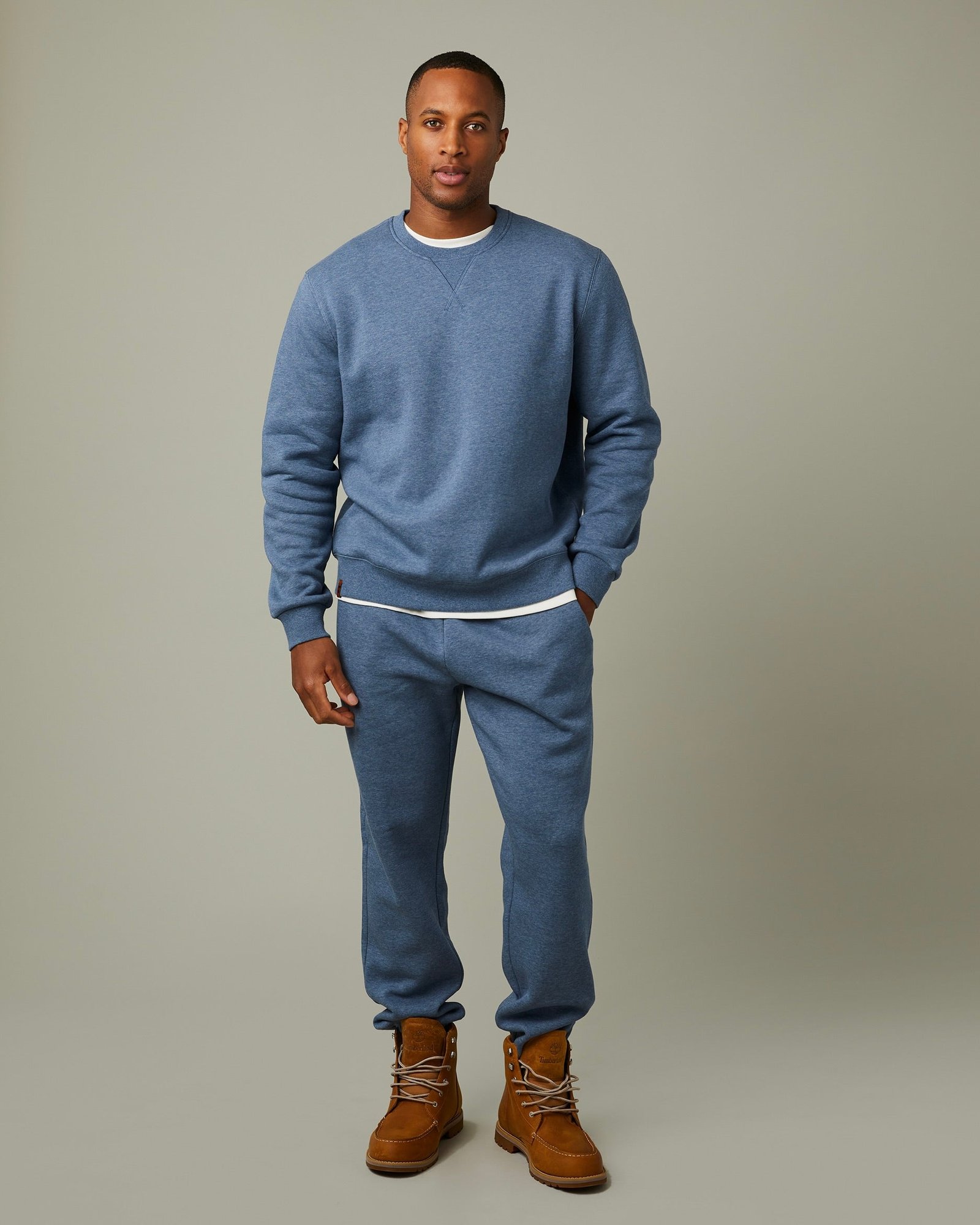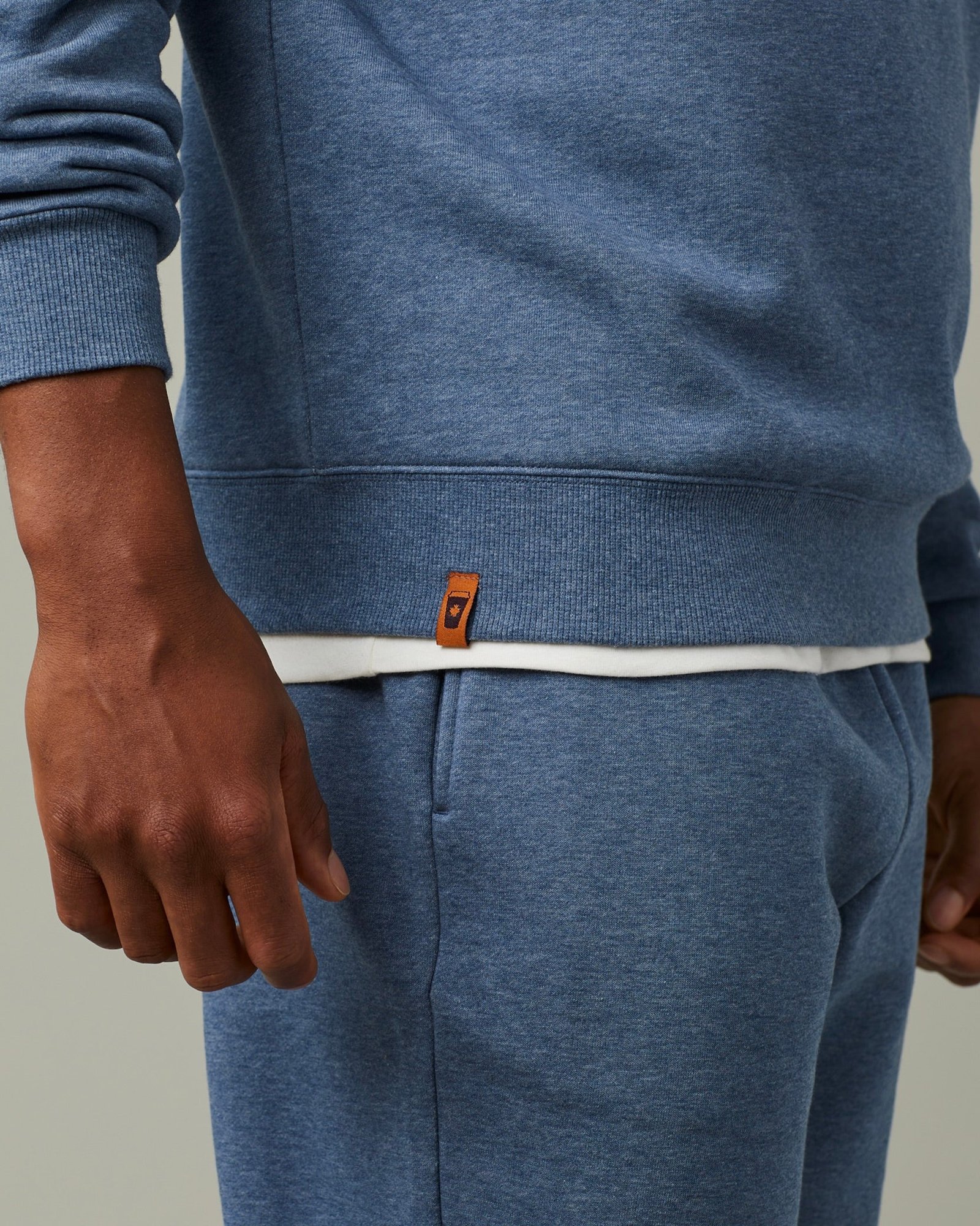 This denim heather blue crewneck brings all-day comfort in a relaxed fit. Pair with matching joggers for the full Canadian denim tuxedo loo. Soft. constructed to last. and unapologetically cozy.